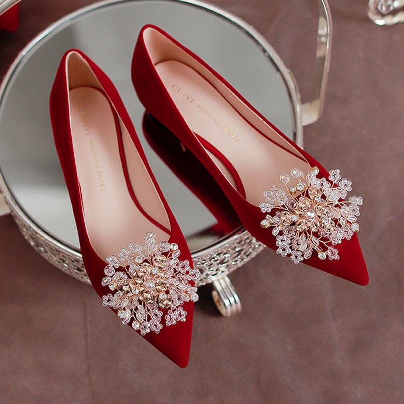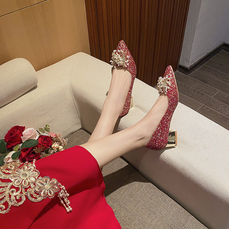 - 尖头高跟鞋 红色婚鞋
