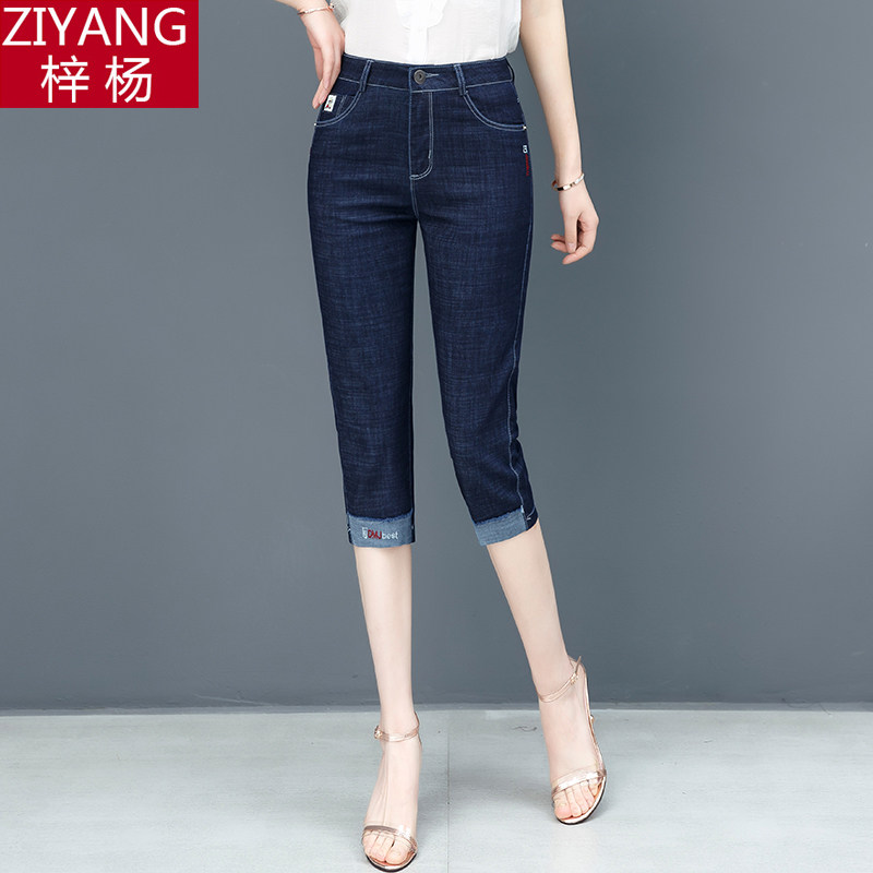 七分牛仔裤女夏季薄款高腰7分弹力修身显瘦小脚卷边小个子中裤子
