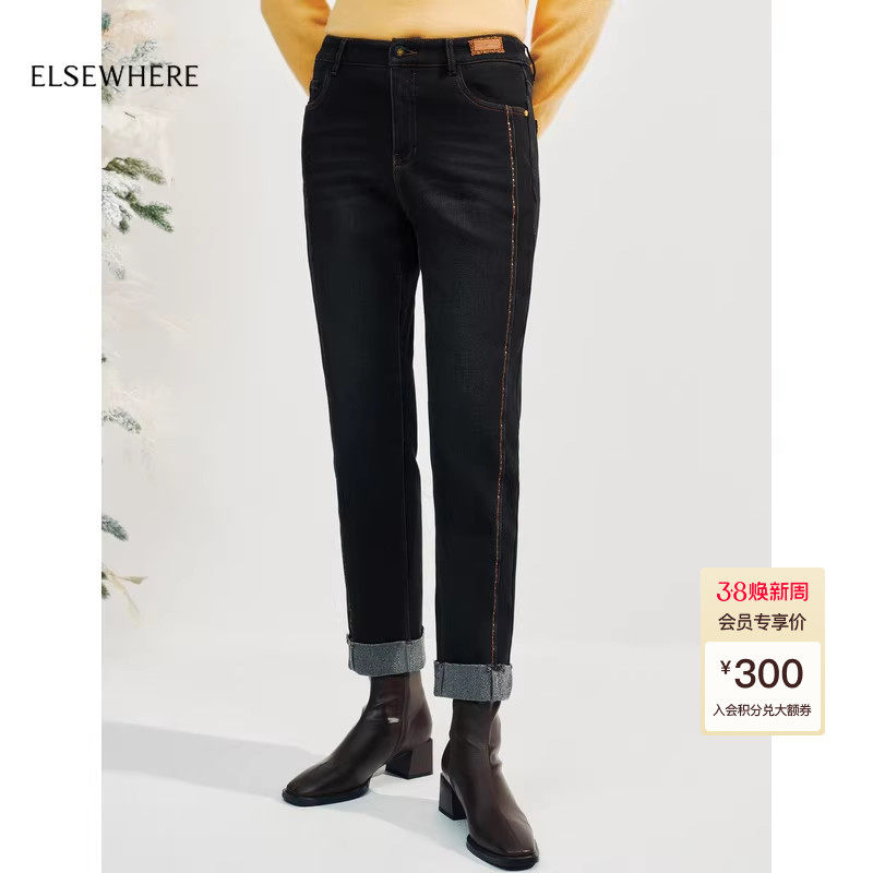 【长绒棉】ELSEWHERE珂思商场同款棉质卷边小脚牛仔裤女冬新款