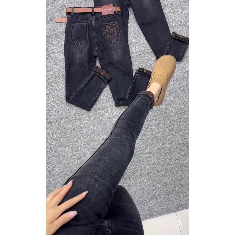 加厚抓绒卷边长裤裤脚毛毛牛仔裤女小脚裤冬季新款高腰九分裤韩版