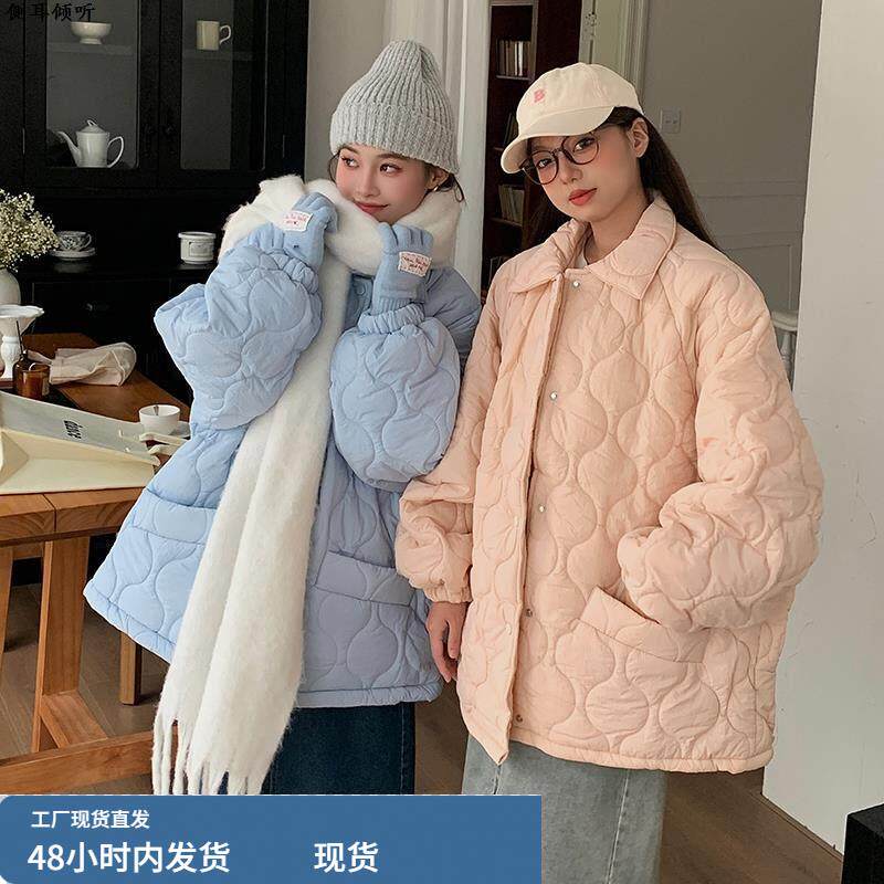 2026冬装胖妹妹大码女装轻薄款保暖棉服中年圆领菱格百搭女棉袄