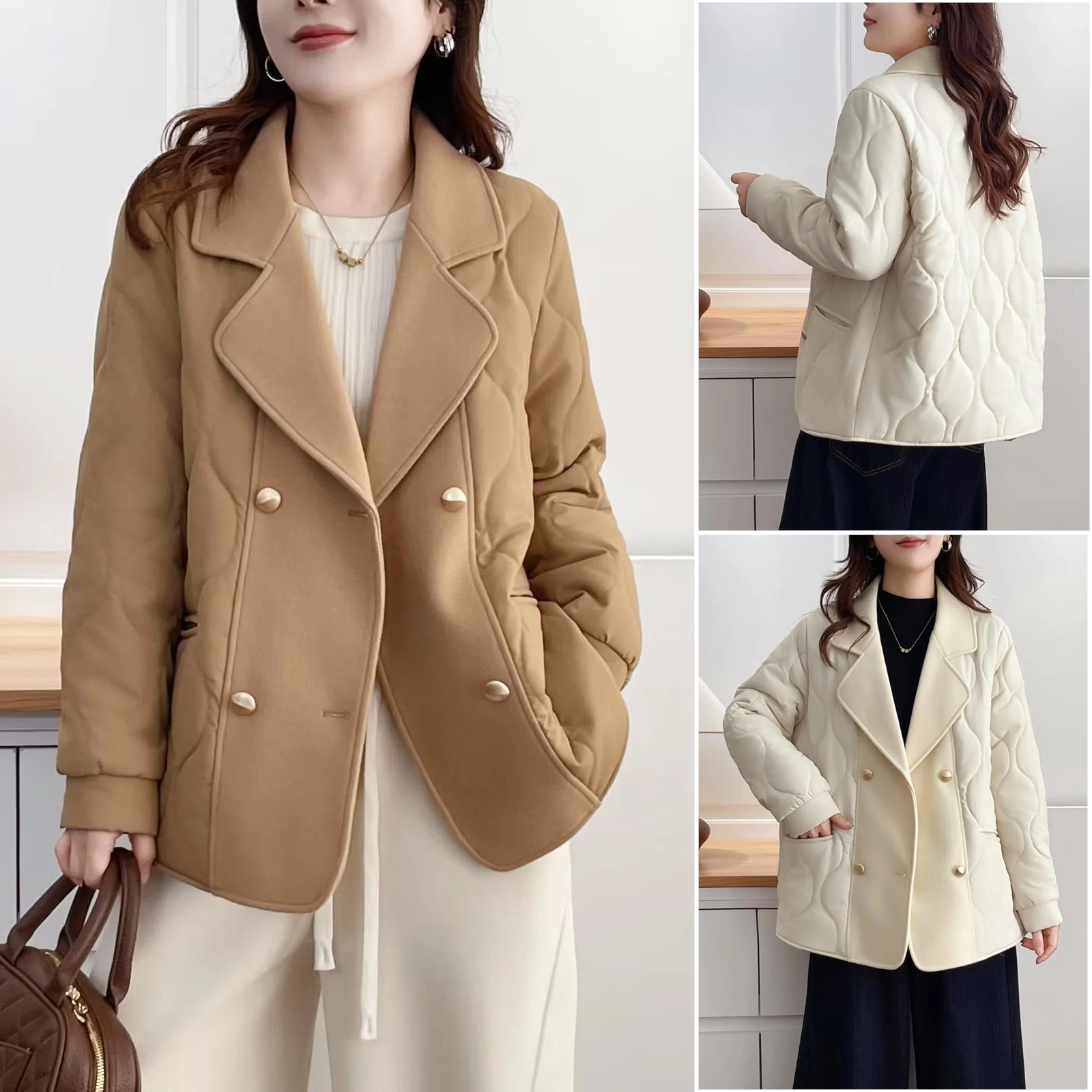 2026新款大码女装胖妹妹冬装拼接加厚保暖西装领棉袄中年棉衣女