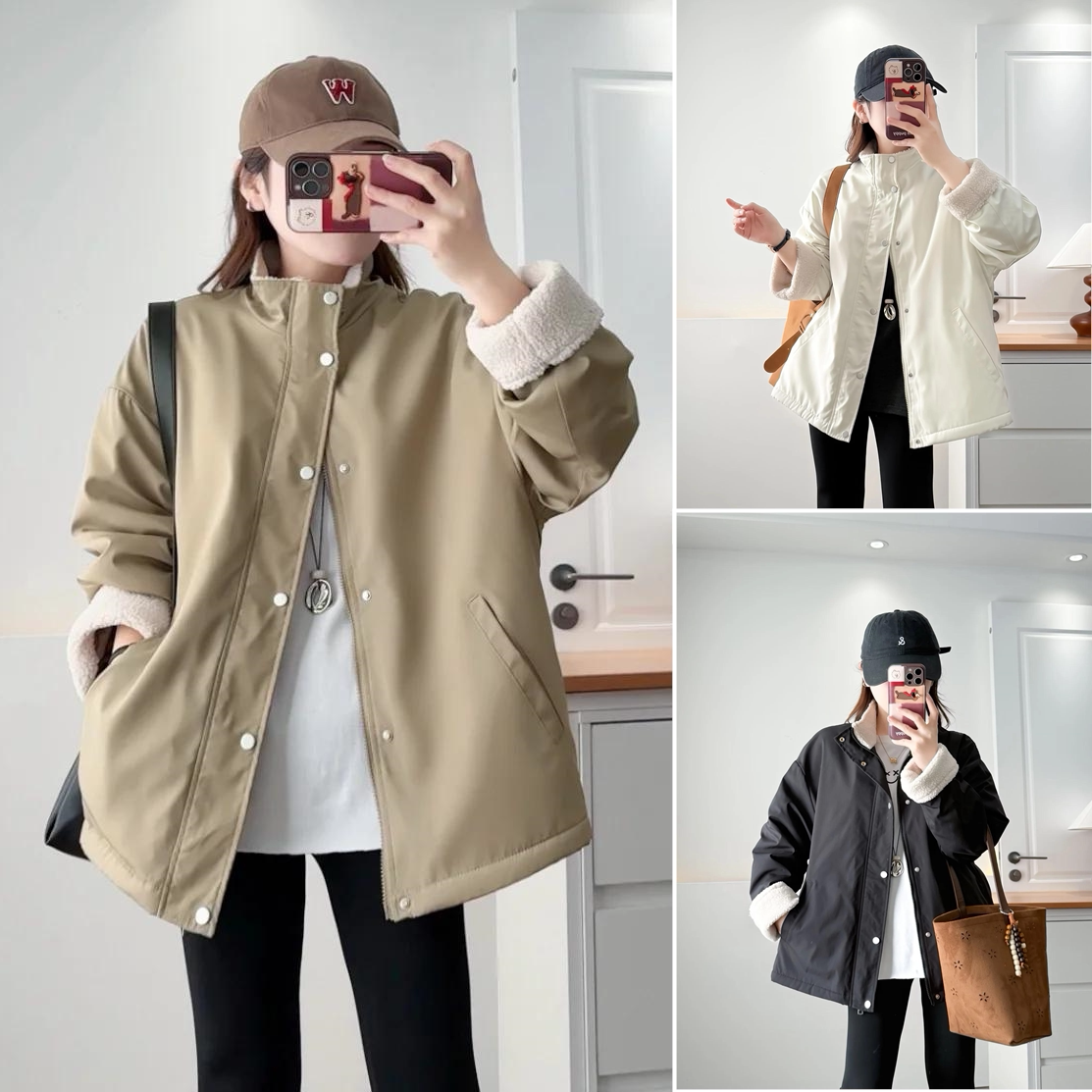 胖妹妹秋冬装新款大码女装宽松显瘦遮肚加厚羊羔绒棉衣外套200斤