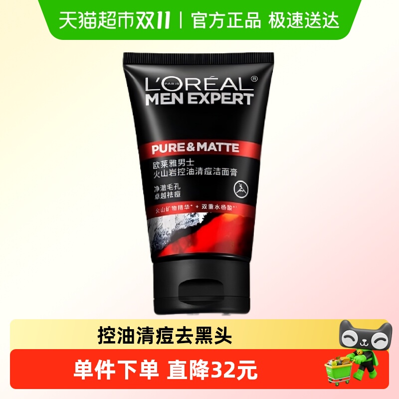 【下拉领淘金币】欧莱雅男士洗面奶控油清痘去黑头洁面乳100ml