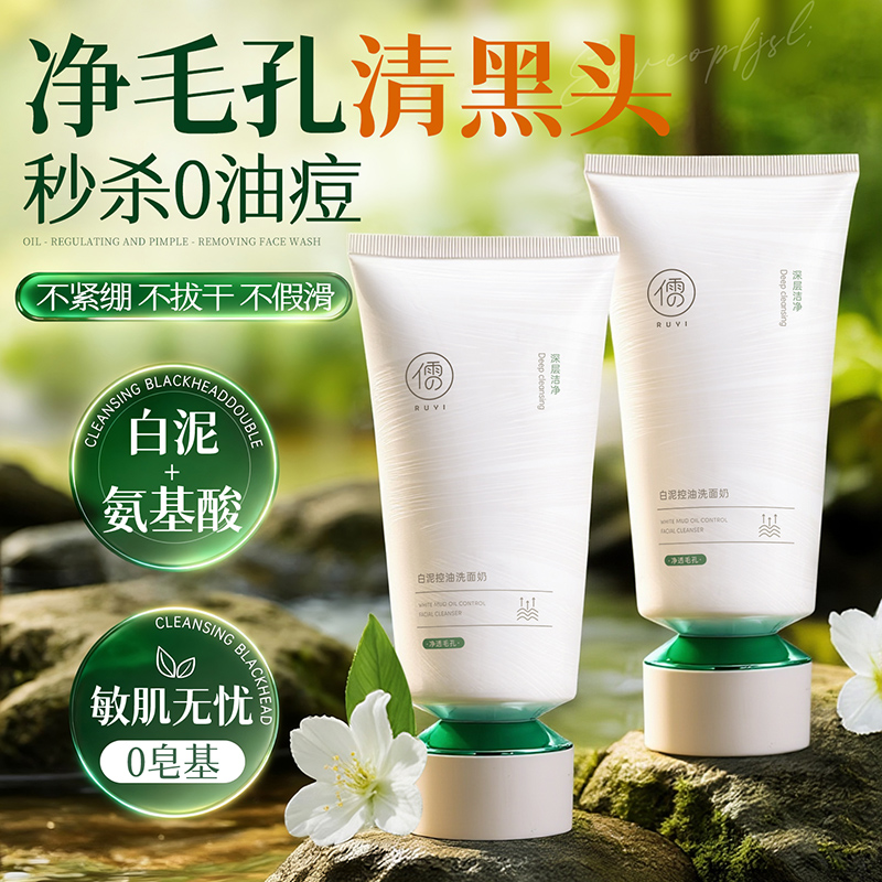 进口氨基酸白泥洗面奶美白控油祛痘清洁去黑头收缩毛孔男女士专用