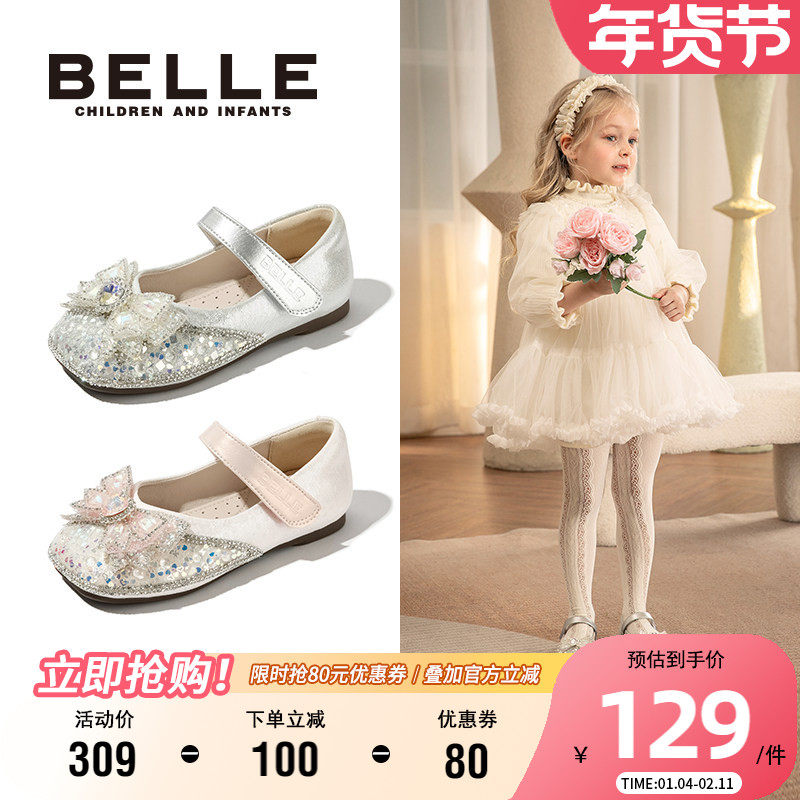 百丽童鞋女童公主鞋2025春季新款儿童水晶鞋水钻鞋小女孩单鞋