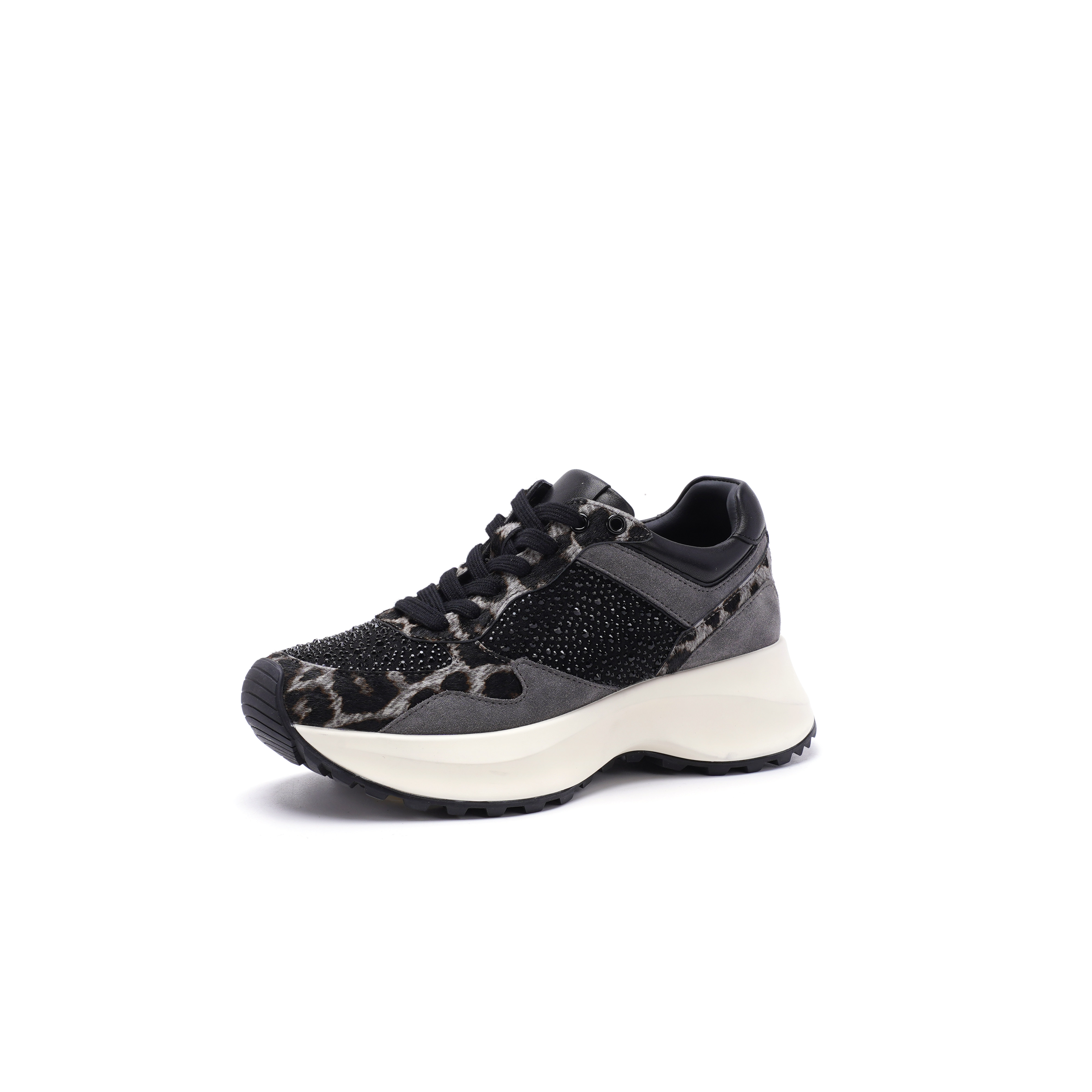 厚底增高女鞋老爹钻鞋2024秋冬百搭透气休闲时尚运动鞋潮流黑灰色