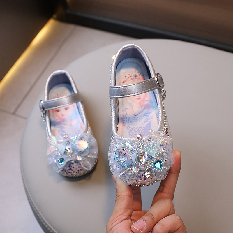 爱莎公主鞋软底女童鞋子宝宝平底水晶鞋2025新款小女孩儿童水钻鞋