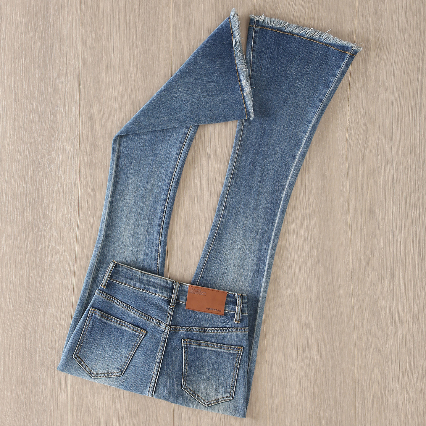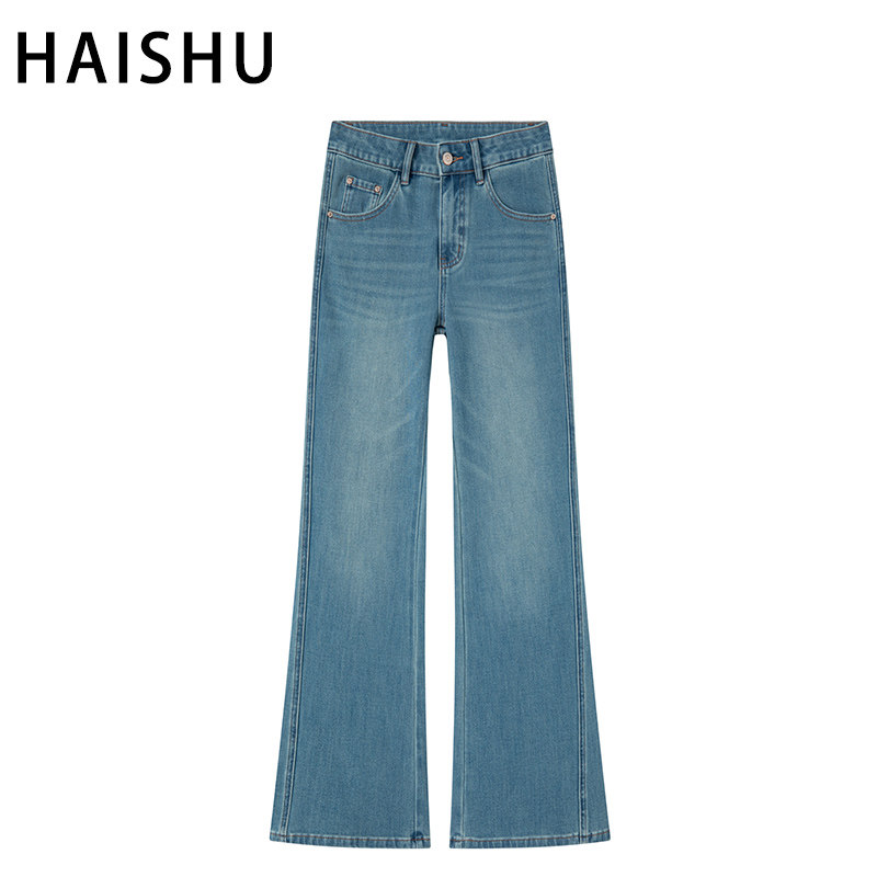 - 毛边微喇叭牛仔裤女