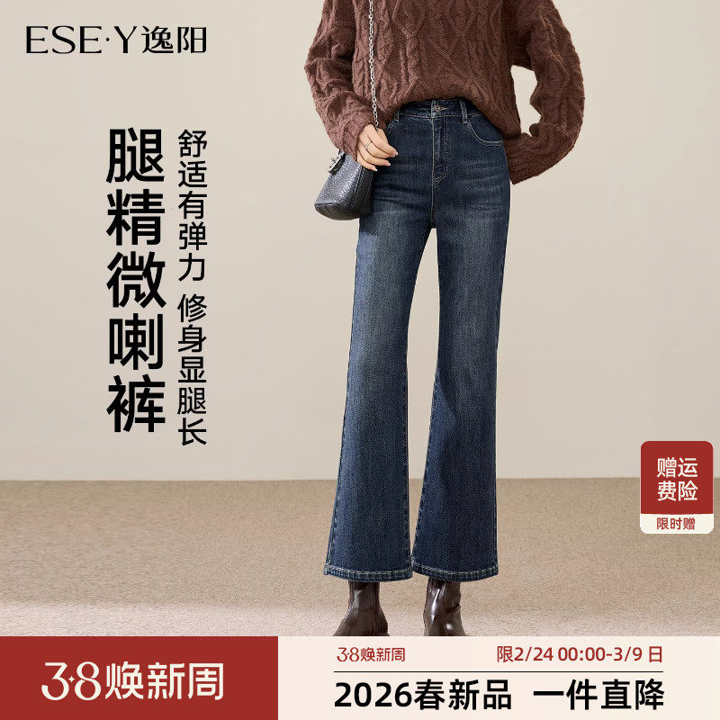 逸阳复古微喇牛仔裤女2026春季新款高腰显瘦小个子九分弹力喇叭裤