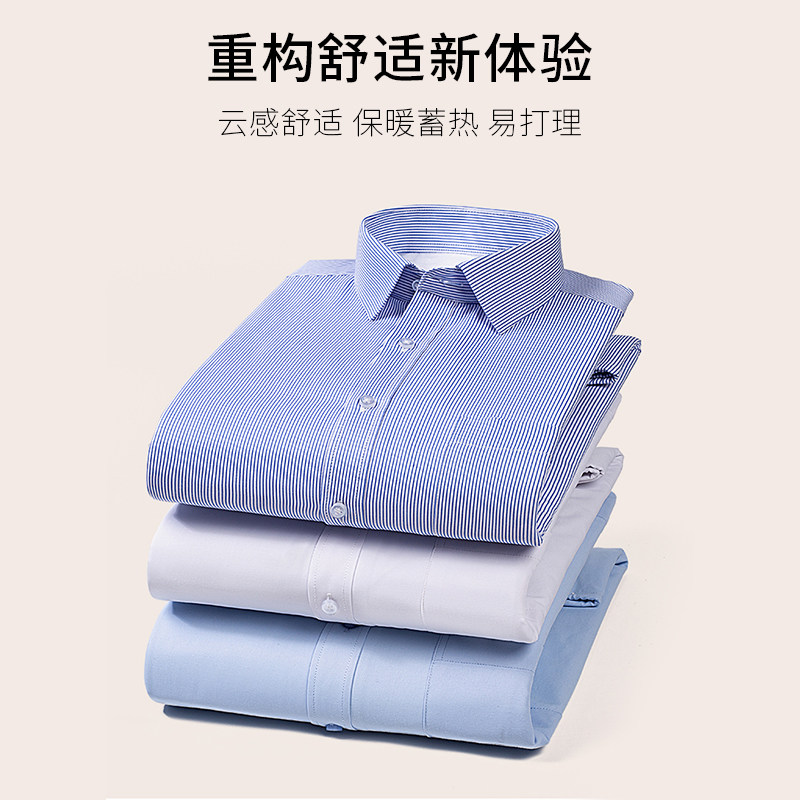 恒源祥商务长袖保暖衬衫男士秋冬季新款高级感加绒无痕免烫衬衣男