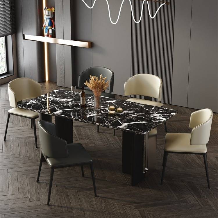 意式极简奢石大理石餐桌椅组合现代简约小户型家用设计师款饭桌椅