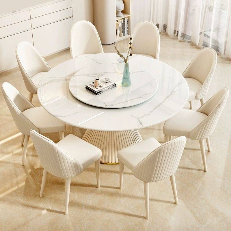 轻奢岩板餐桌椅组合现代简约小户型家用北欧圆形带转盘实木大圆桌