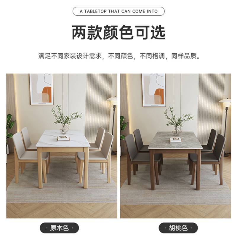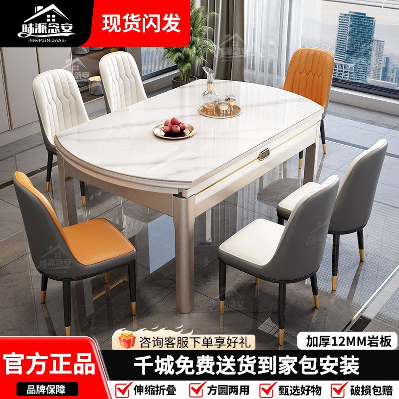 岩板餐桌椅组合现代简约小户型家用餐椅实木折叠方圆饭桌伸缩两用