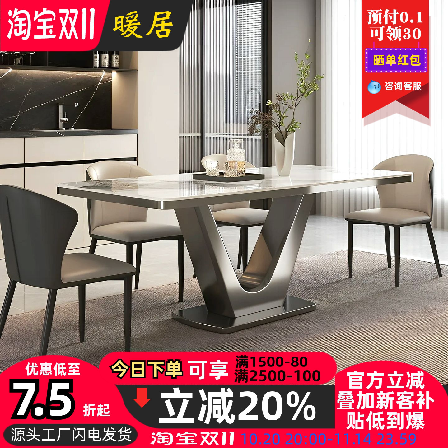 轻奢岩板餐桌椅组合现代简约小户型家用长方形餐桌西餐厅休闲桌椅