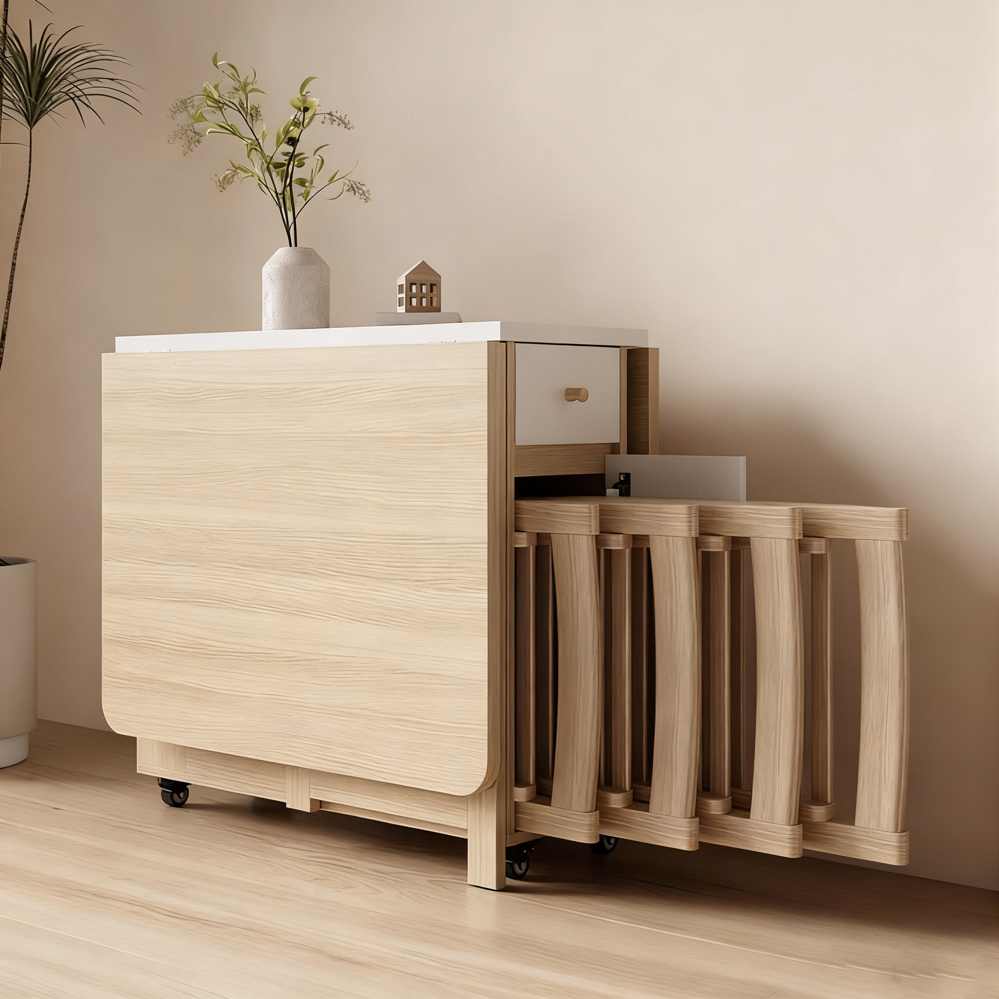 德国多功能折叠餐桌椅组合现代简约小户型家用可伸缩带轮餐易饭桌