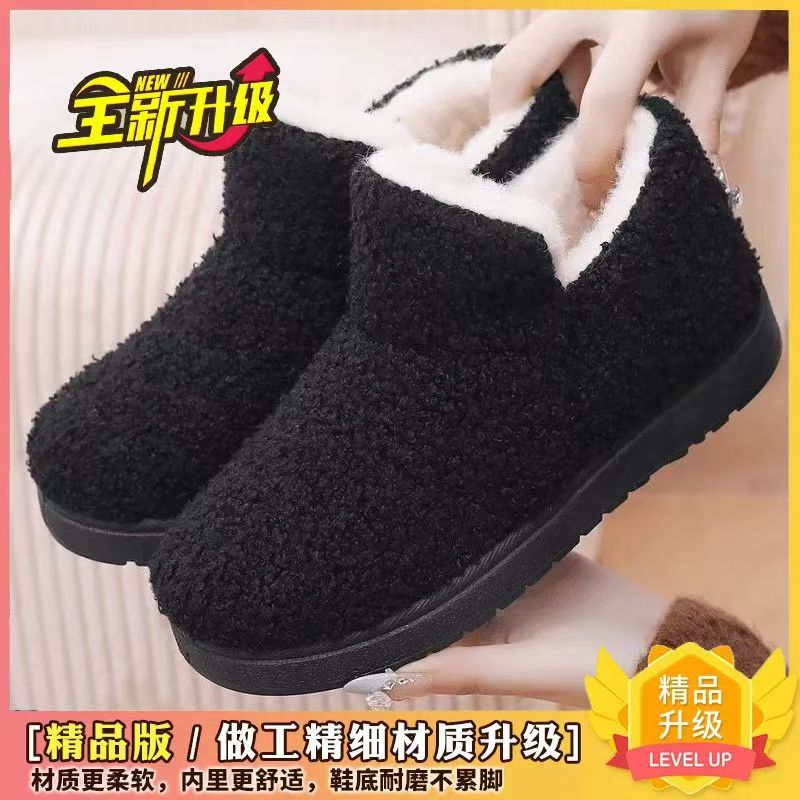 棉鞋女豆豆鞋加绒保暖毛毛鞋软底一脚蹬时尚韩版羊羔毛老北京布鞋