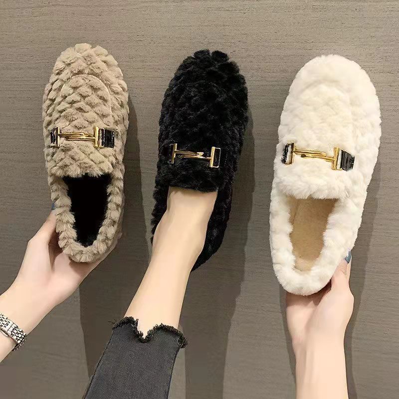 2025冬季加厚时尚韩版毛毛鞋爆款一脚蹬休闲女棉鞋软底加绒豆豆鞋