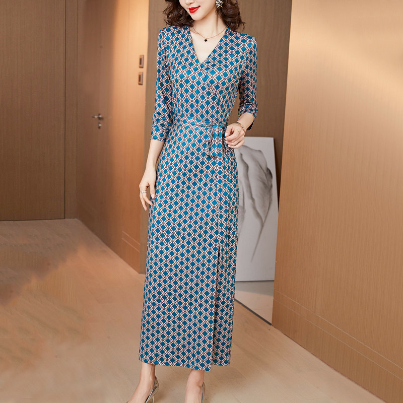 - 欧洲站欧货真丝连衣裙