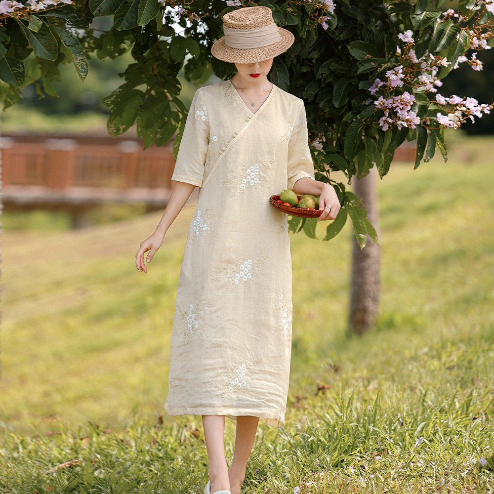 - 原创棉麻连衣裙