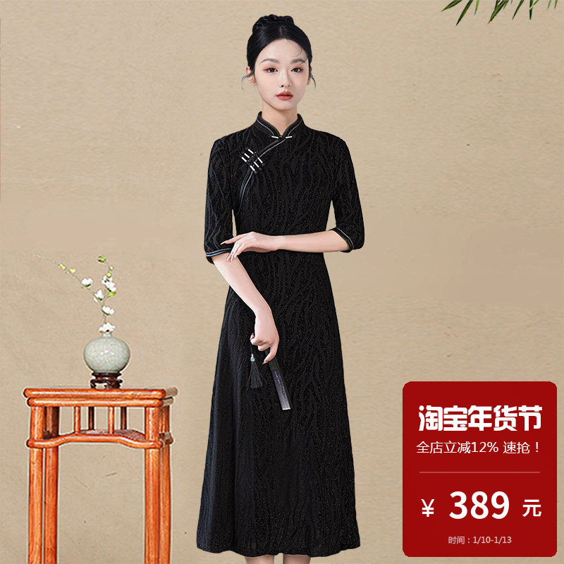 - 金丝绒连衣裙长款