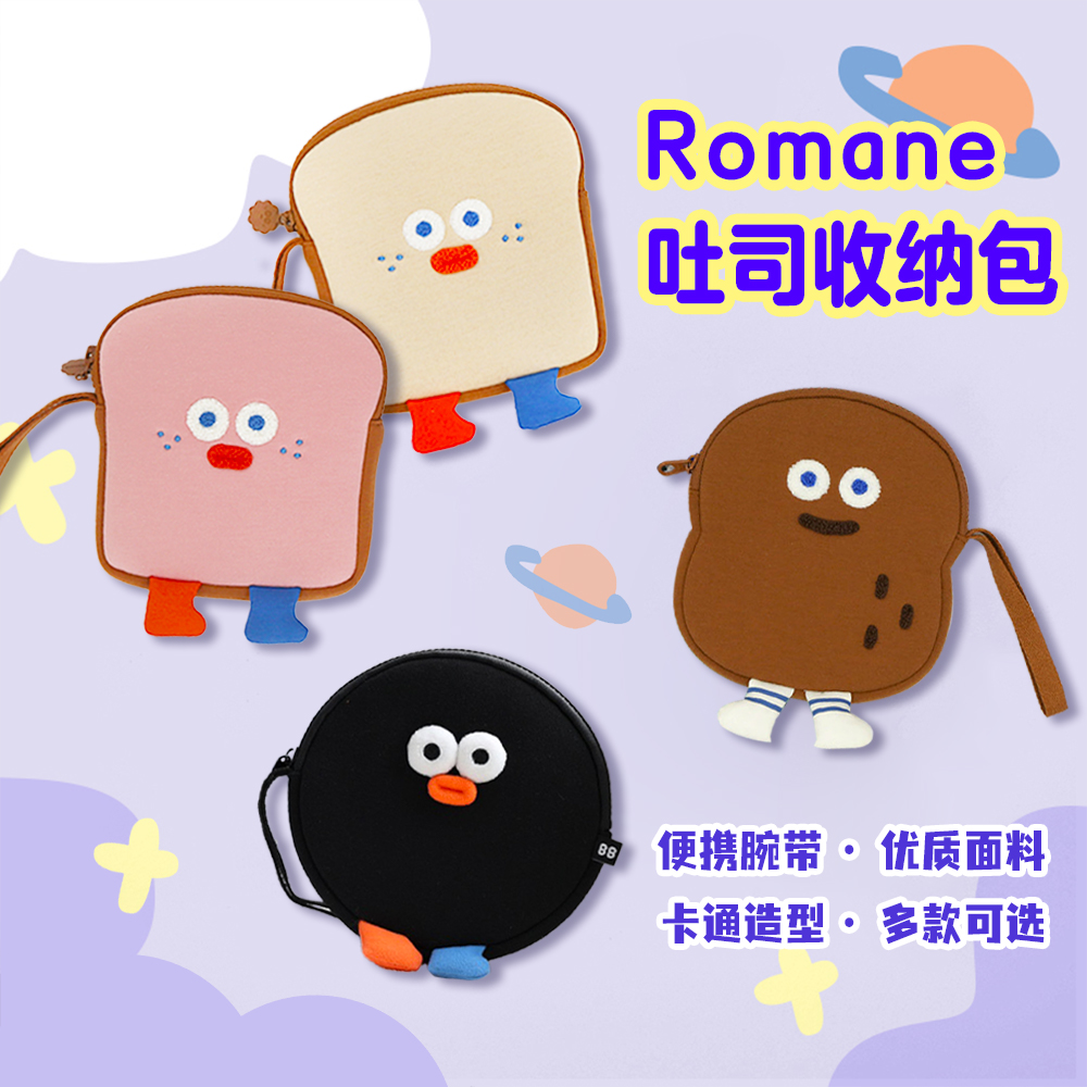 Romane韩国可爱吐司口红唇膏化妆包零钱卡包耳机包小数码收纳包