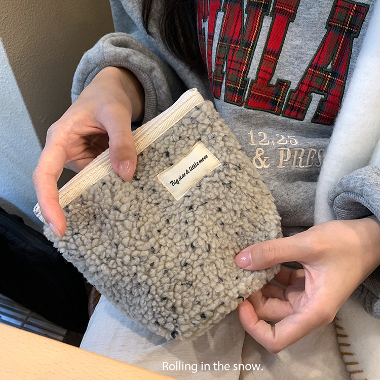 韩国小众便携毛绒化妆包可爱简约口红零钱小号杂物收纳包女大容量