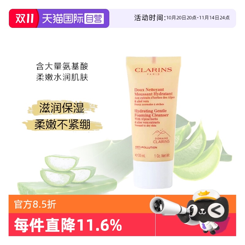 香港直邮Clarins娇韵诗柔润/净澈泡沫洁面温和洗面奶125ml正品
