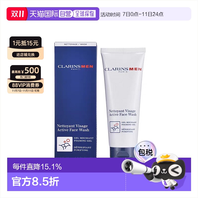 欧洲直邮Clarins娇韵诗男士洁面洗面奶125ml清洁毛孔净肤焕采正品