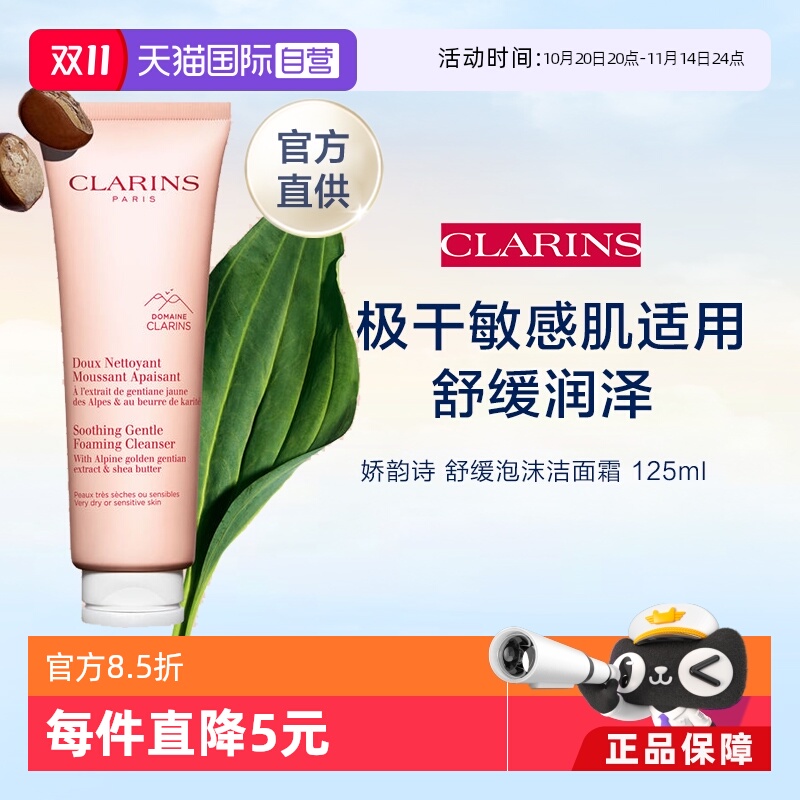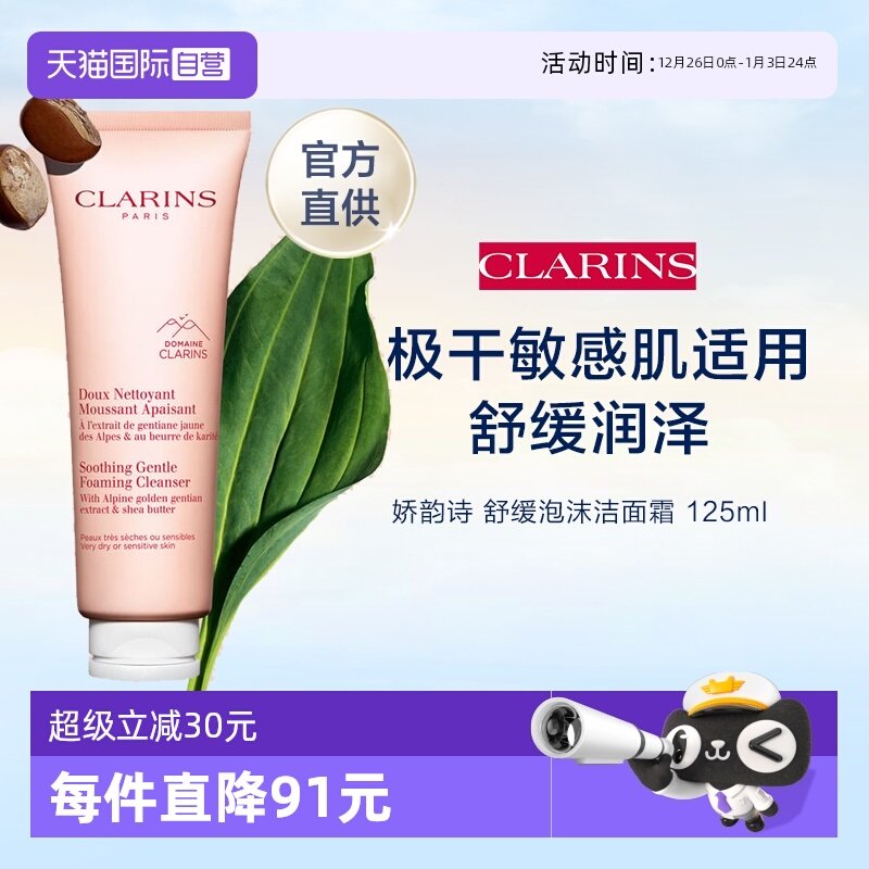 欧洲直邮Clarins 娇韵诗洗面奶舒柔泡沫洁面乳125ml舒缓滋润洁净