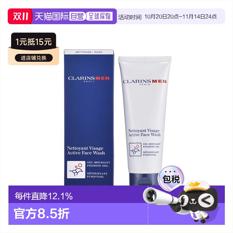 欧洲直邮Clarins娇韵诗男士活力洁面洗面奶125ml深入清洁滋润新款
