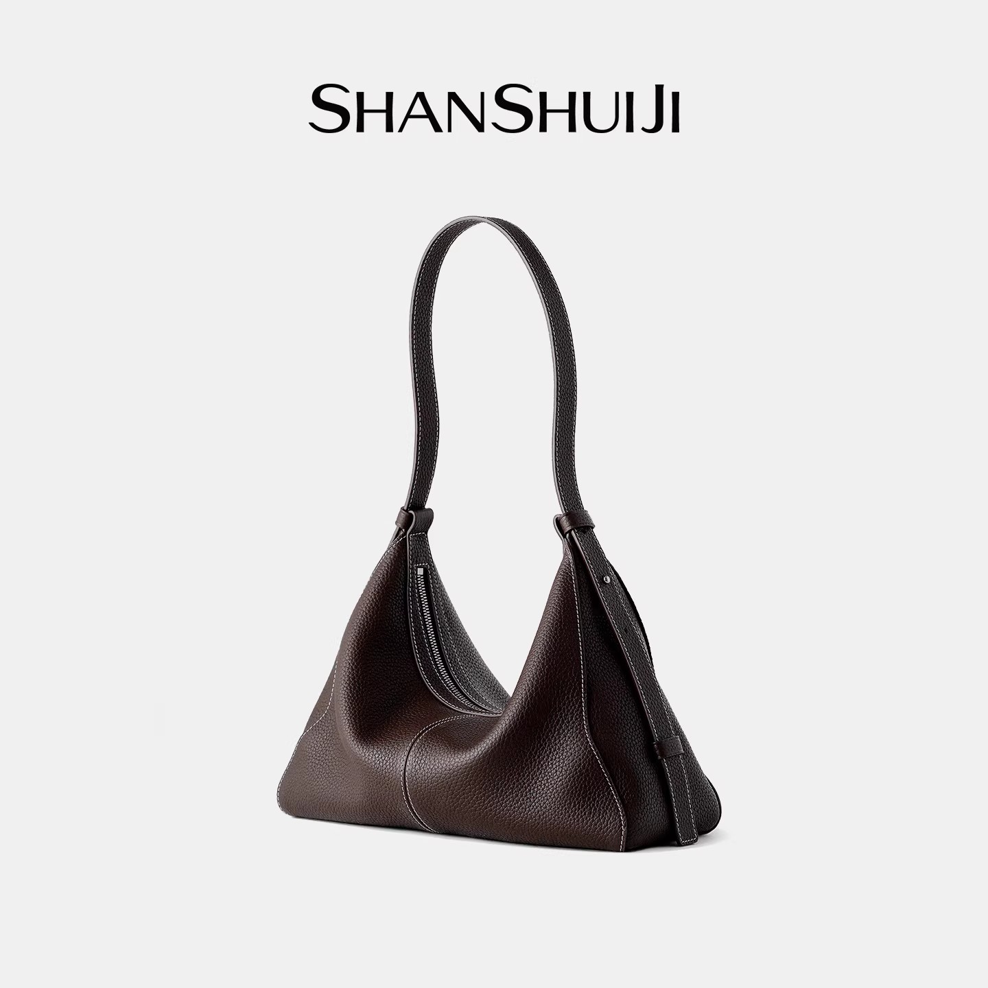 山水集檐下hobo包腋下头层植鞣牛皮单肩斜挎包高质感通勤饺子女包