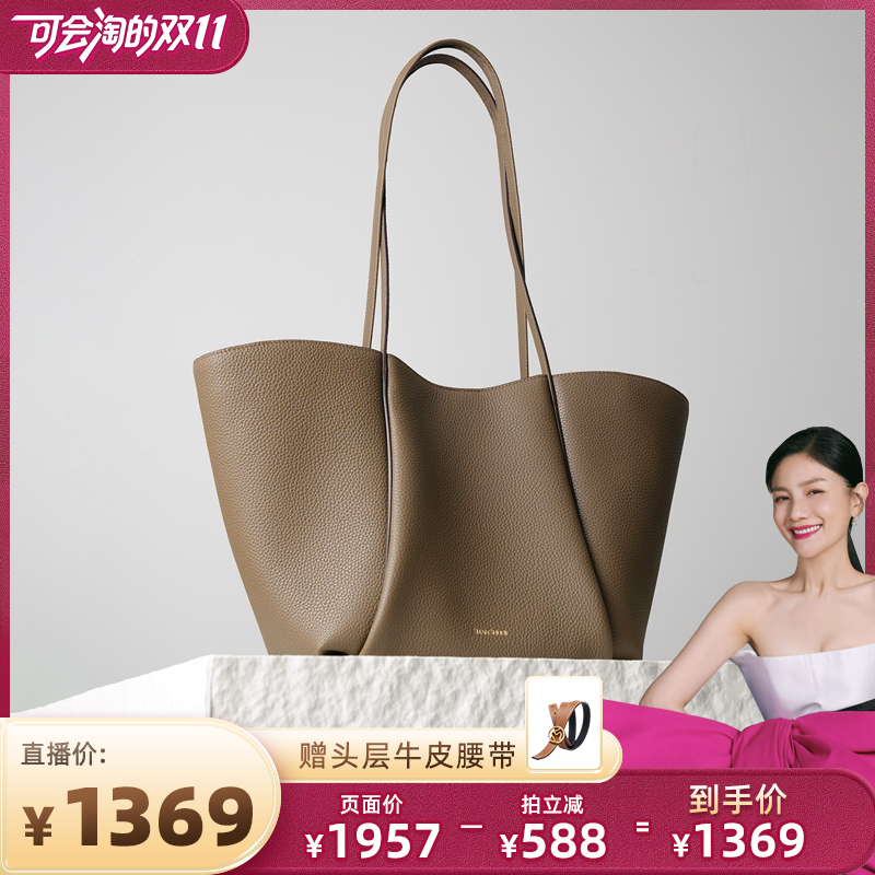 山水集菜篮子头层牛皮女包高级感大容量托特包真皮通勤手提单肩包