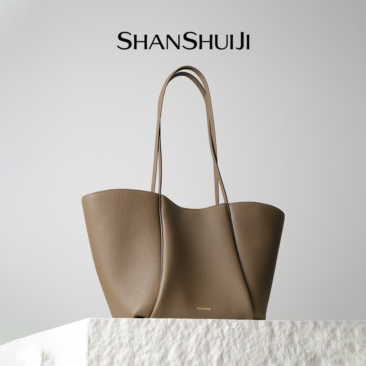 山水集2025新款大容量小众通勤女包包牛皮轻奢高级感单肩包托特包