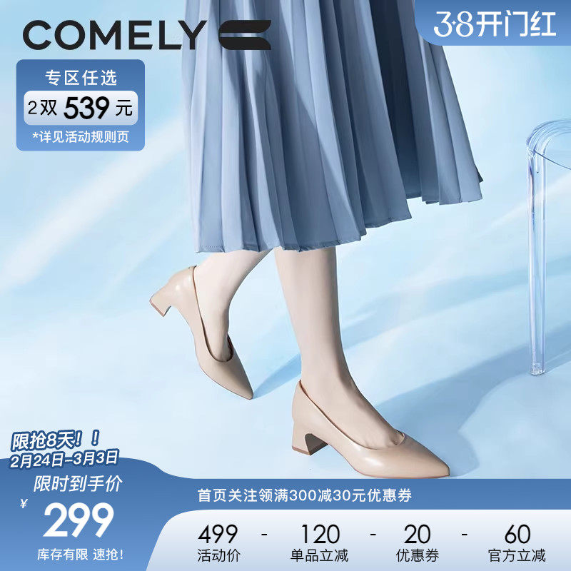康莉comely浅口尖头粗跟单鞋女方头通勤中跟鞋 159元起不定时更新