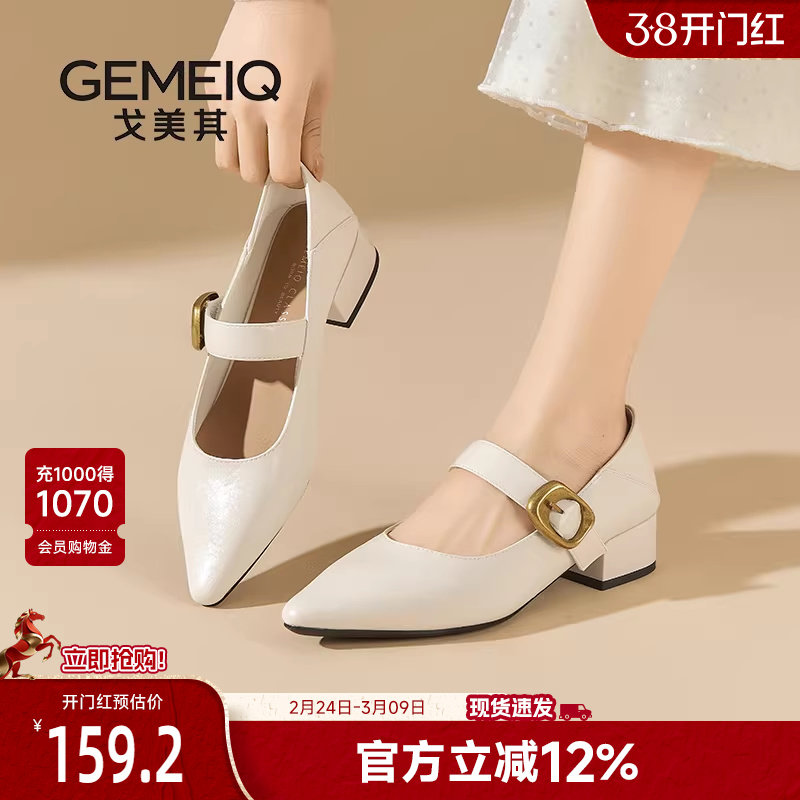 戈美其商场同款法式气质玛丽珍鞋女2025新款开春粗跟尖头单鞋中跟