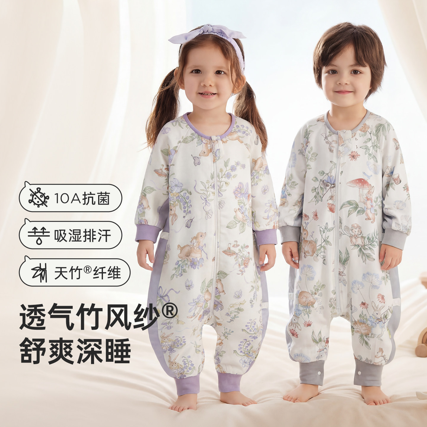 AEgtesol儿童纯棉春夏分腿睡袋宝宝无骨四季通用防踢被婴儿连体衣