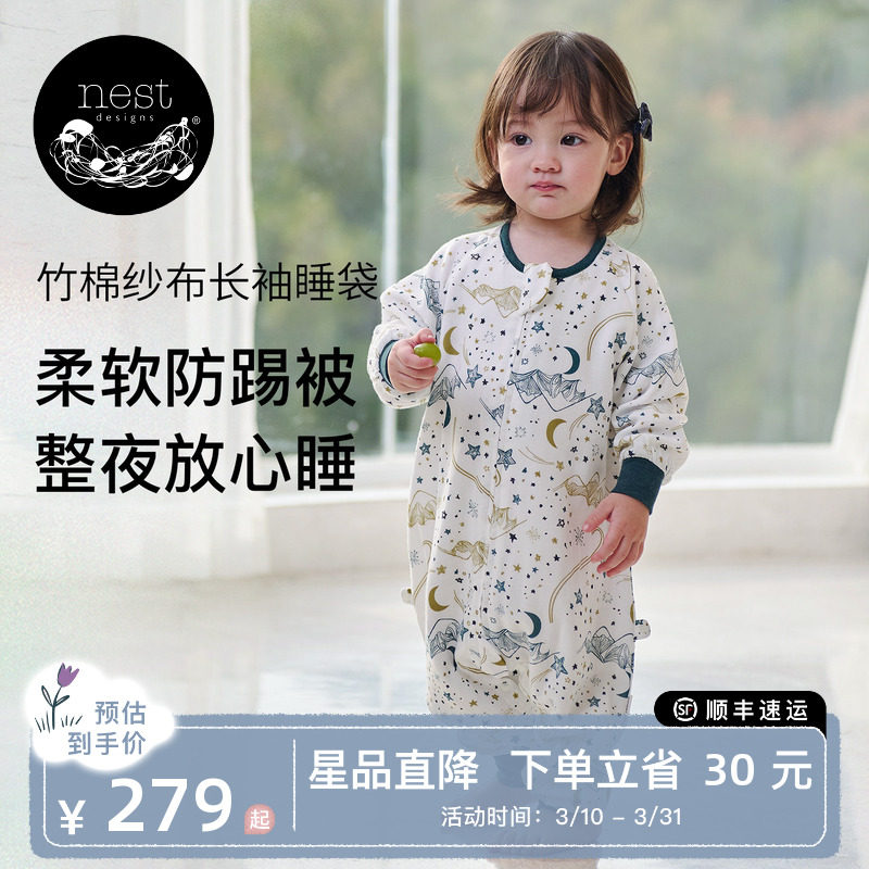 Nest Designs婴儿睡袋四季通用竹棉纱布宝宝睡袋儿童分腿防踢被