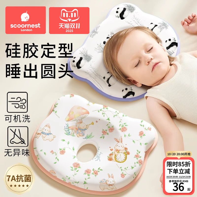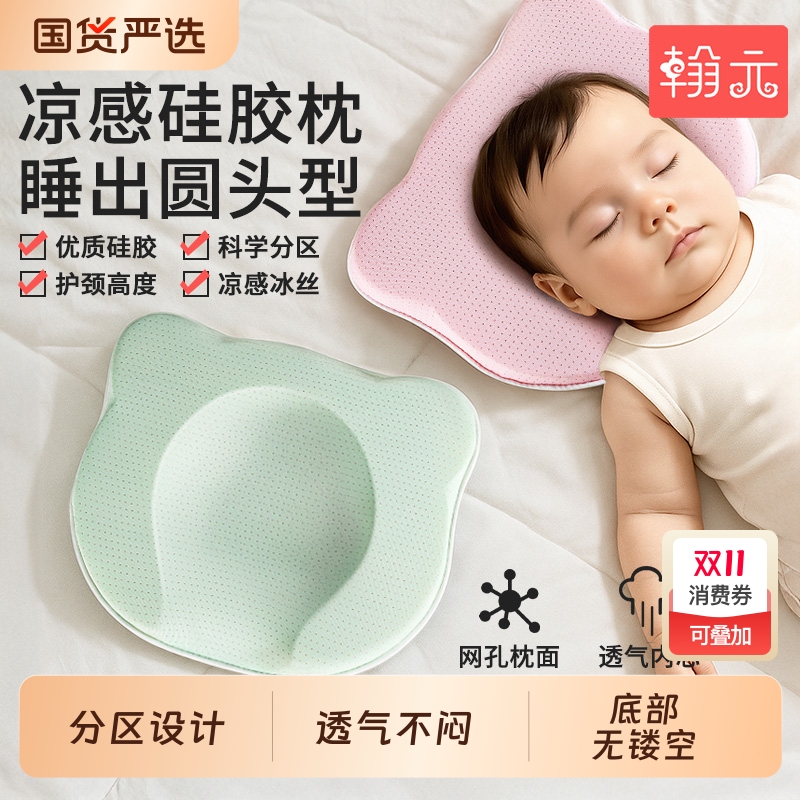 婴儿定型枕新生儿纠正头型矫正圆头偏0到6个月-3宝宝专用硅胶枕头