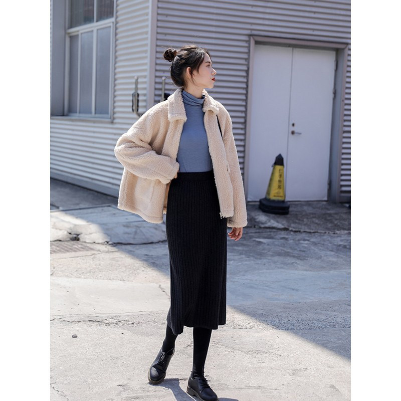 针织半身裙女冬厚加绒不开叉一步长裙中长款一体绒高腰包臀裙直筒