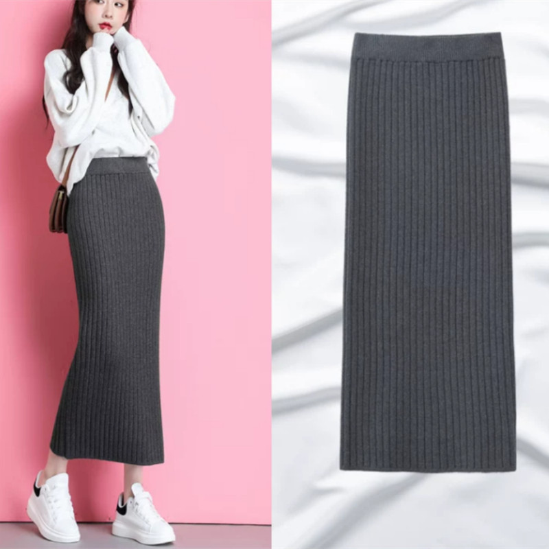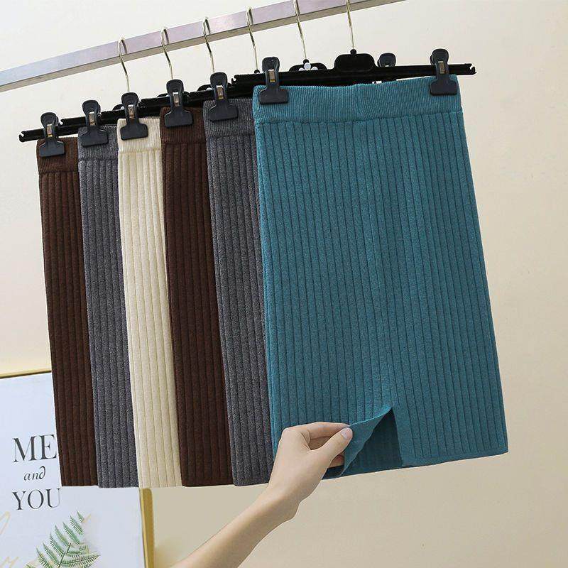 针织半身裙秋冬女中长款包臀显瘦一步裙毛线宽松加厚直筒a字裙子