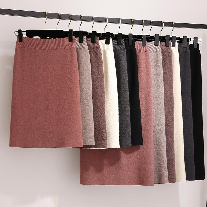 秋冬针织一步裙羊绒半身裙紧身包臀裙弹力裙子大码羊毛线短裙加厚