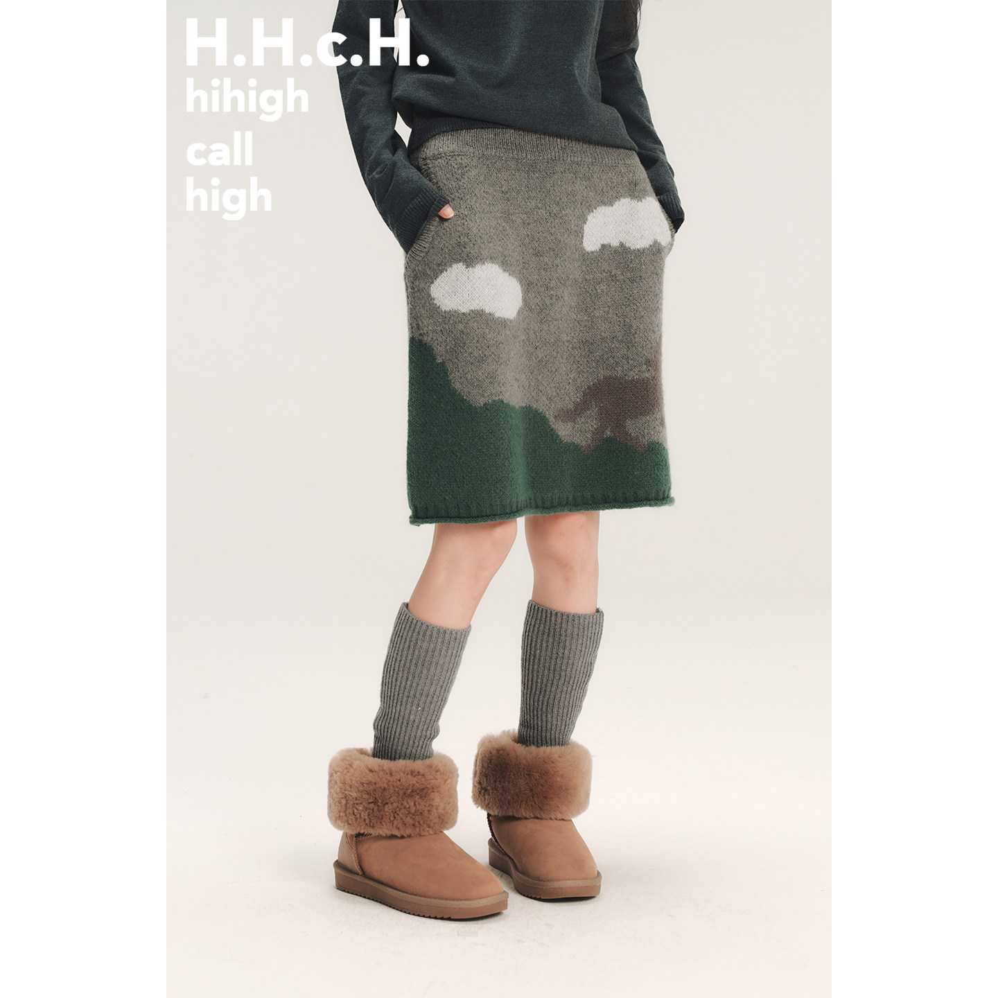 HHCH口海 SS26 马年新品羊毛混纺撞色提花松紧腰针织一步裙半身裙