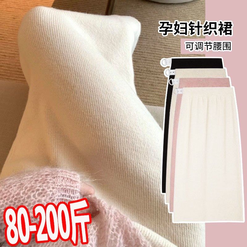 大码孕妇半身裙2024秋冬新款无托腹休闲针织一步裙直筒显瘦200斤