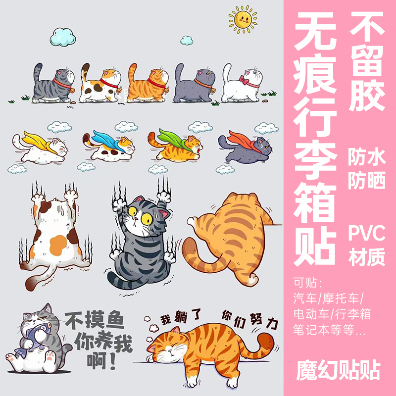 可爱小猫行李箱贴纸防水不留胶拉杆箱笔记本电动车改造专用装饰贴