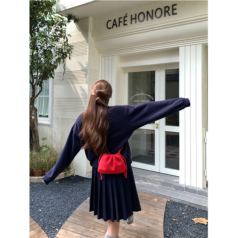 芝士商店~韩国新年红色斜挎包女秋冬手提云朵饺子包抽绳麂皮包包