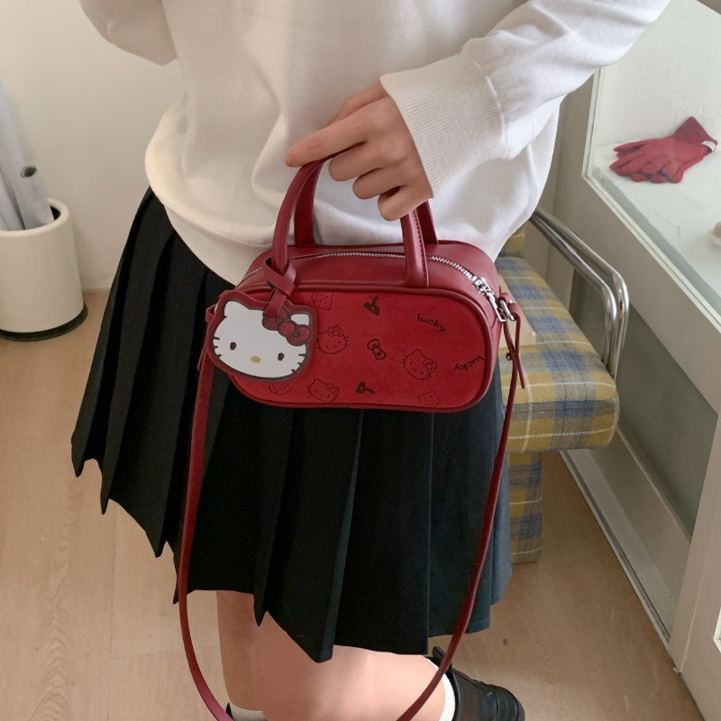 2026新年红色斜挎包小众设计包包女可爱手提枕头包少女休闲单肩包