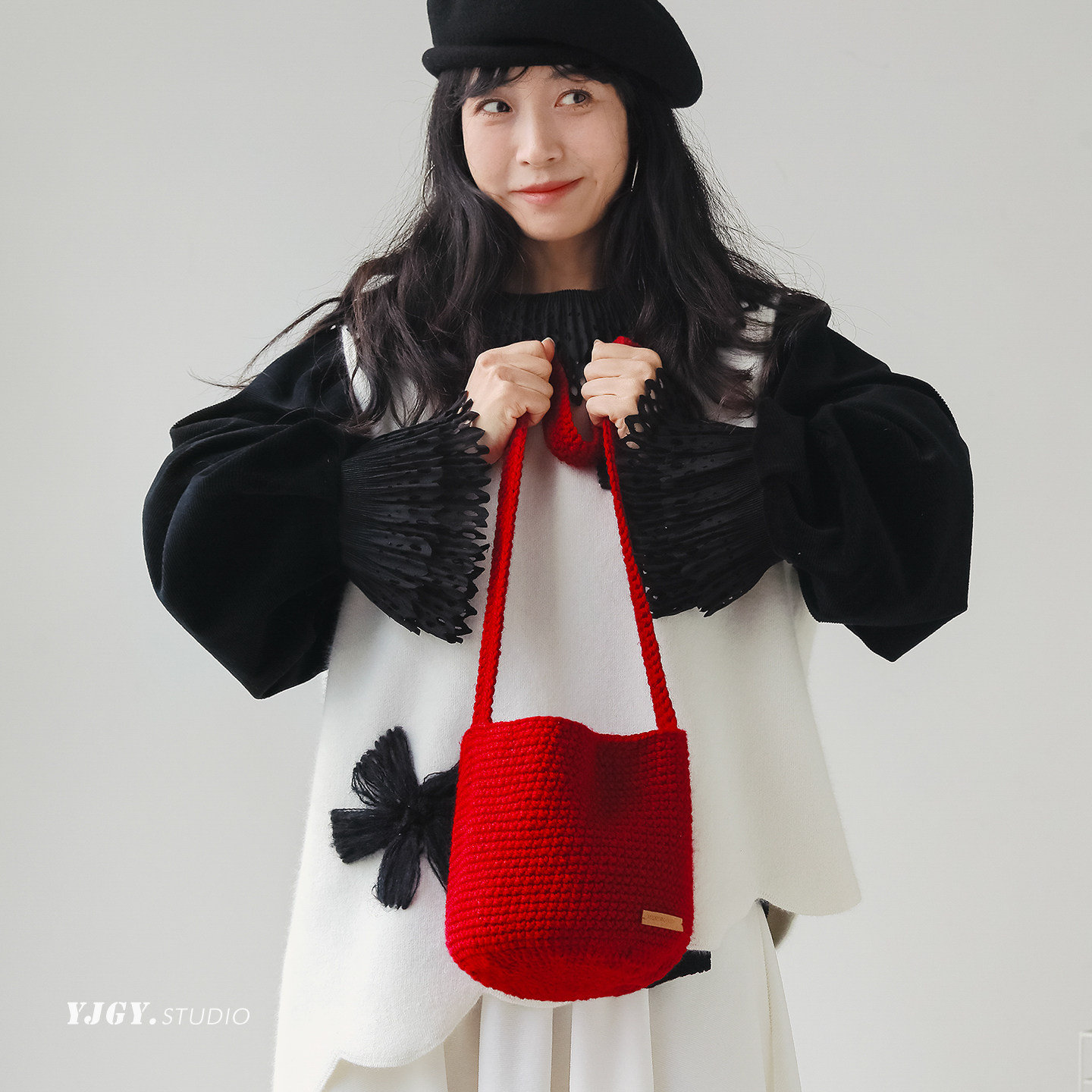 印计谷羽原创圣诞节羊毛针织包包女红色斜挎包氛围感水桶包毛线包