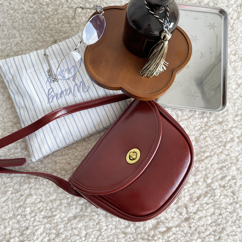 【明星同款】unifine包包女新款马鞍包红色斜挎包小众板栗包女包