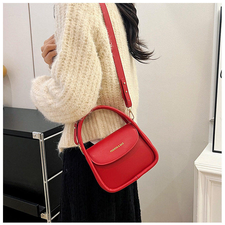 红色斜挎包冬手提小包包女2023冬季新款潮流洋气质感单肩包复古
